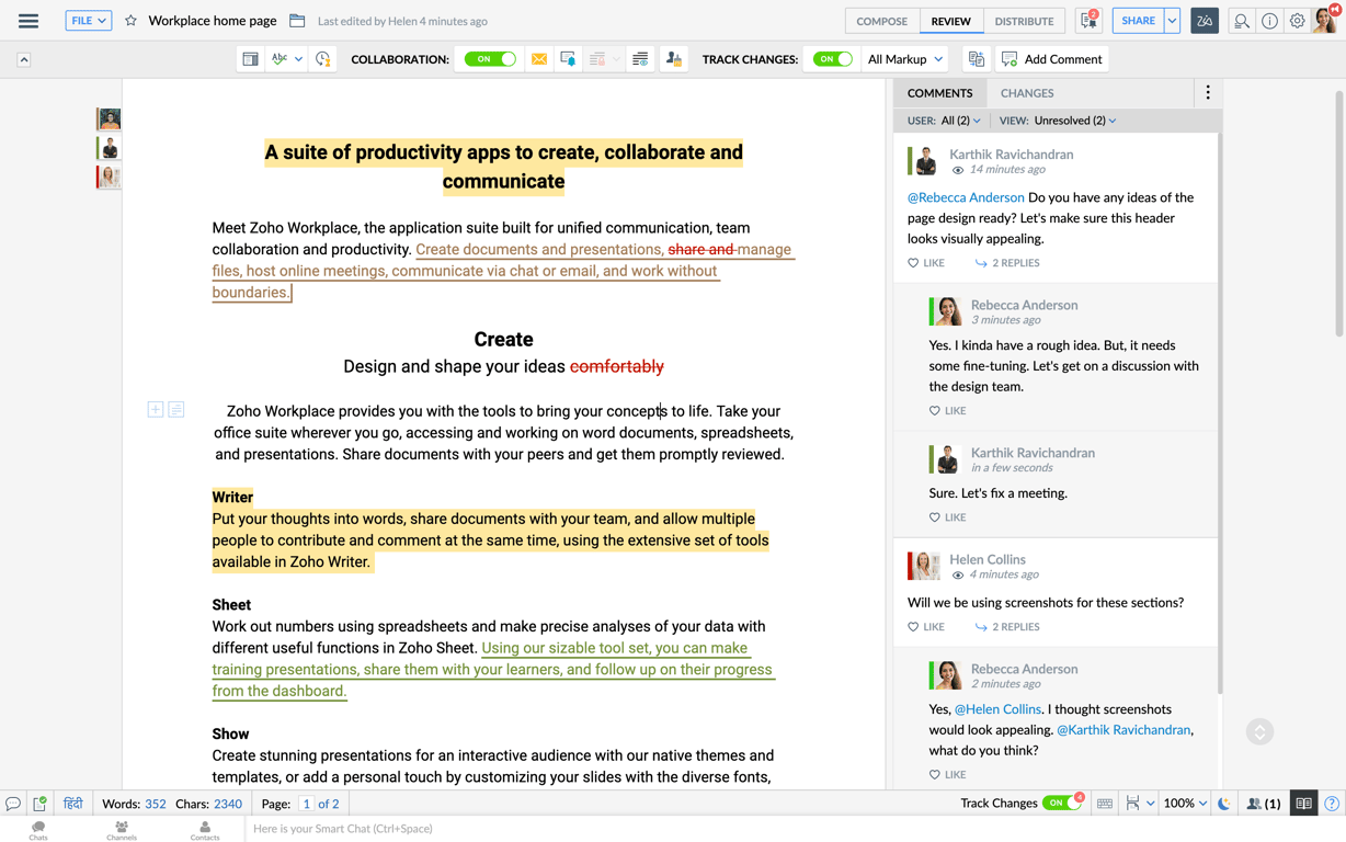 Online word processing tool with real-time collaboration